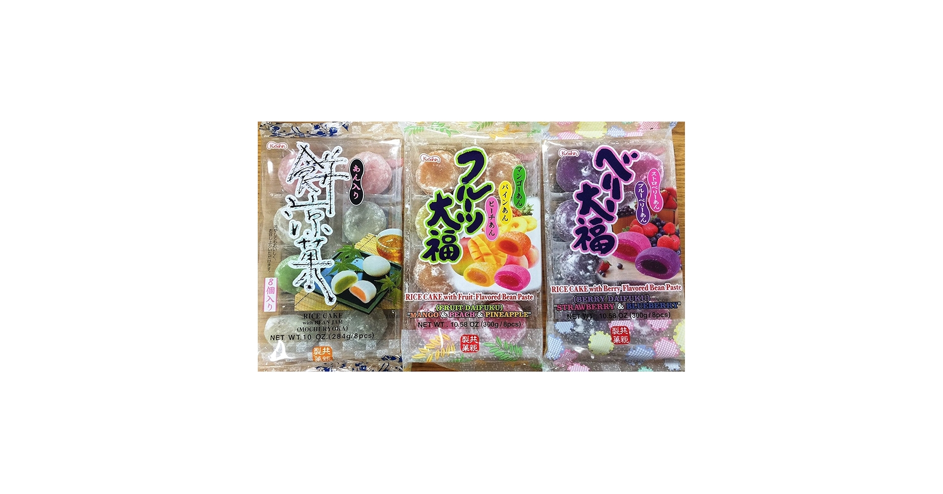Japanese Fruit Flavor Mochi Strawberry & Blueberry, Mango & Peach & Pineapple, Bean Jam Rice Cake Mochi Sampler - 8 Count (Pack of 3)